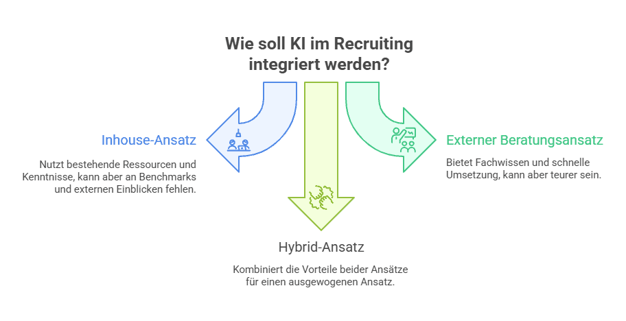 Ein Inhouse-Team kennt die eigene Kultur und Prozesse im Detail. Wer bereits ein starkes Recruiting-Team und Kapazitäten für Prozessarbeit hat, kann Automatisierung und KI-Integration intern treiben.