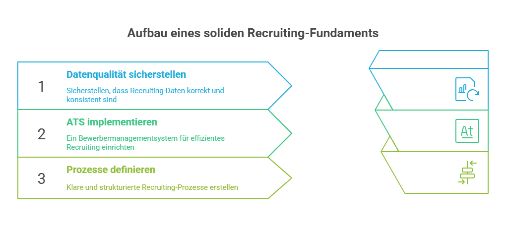 Bevor Unternehmen ihr Recruiting automatisieren oder KI-gestützt optimieren, braucht es ein stabiles Fundament. Drei Bausteine sind dabei entscheidend: korrekte Daten, ein professionelles ATS und klar definierte Prozesse.